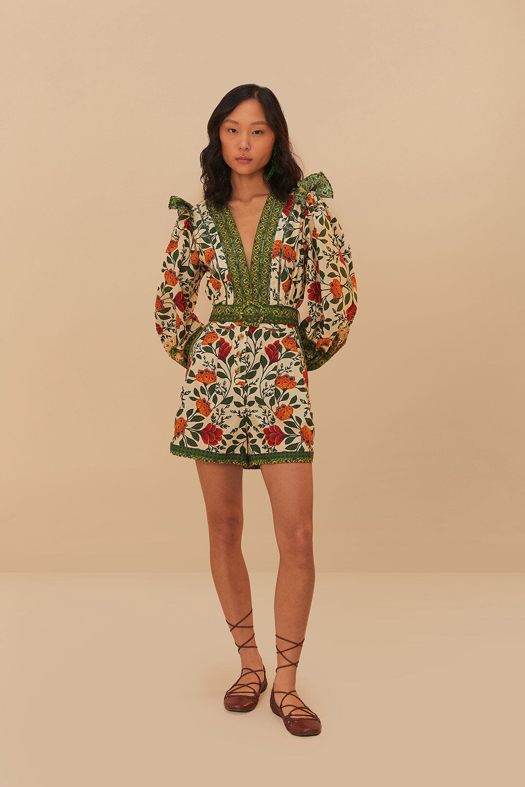 Off-White Picnic Flowers Euroflax™ Premium Linen Romper