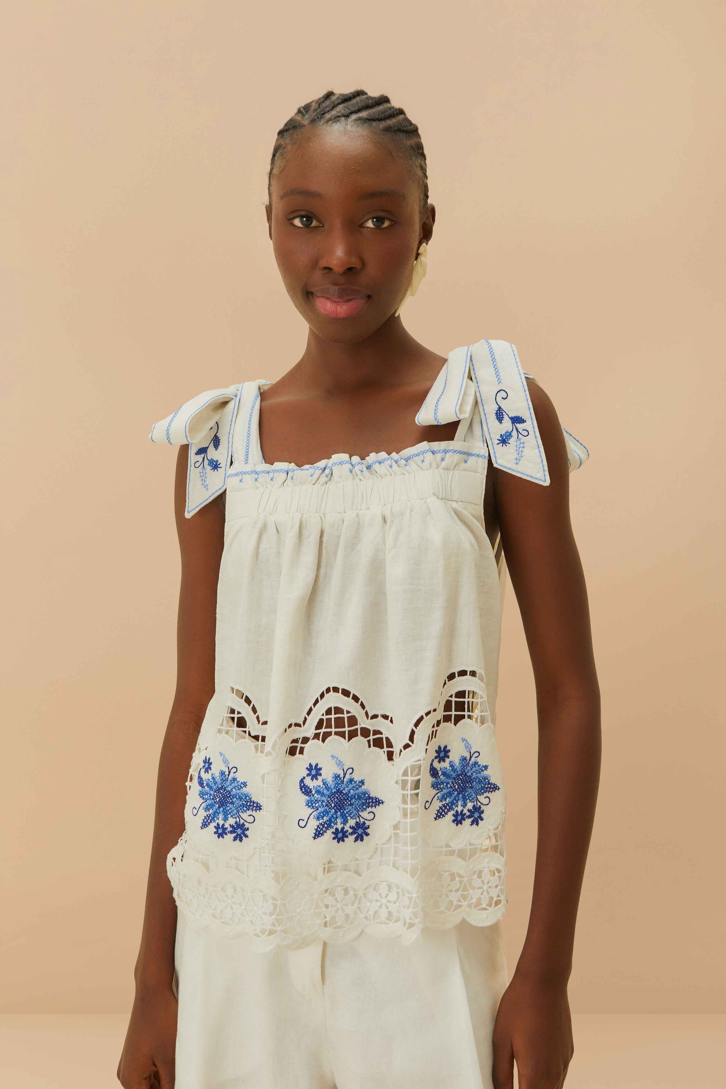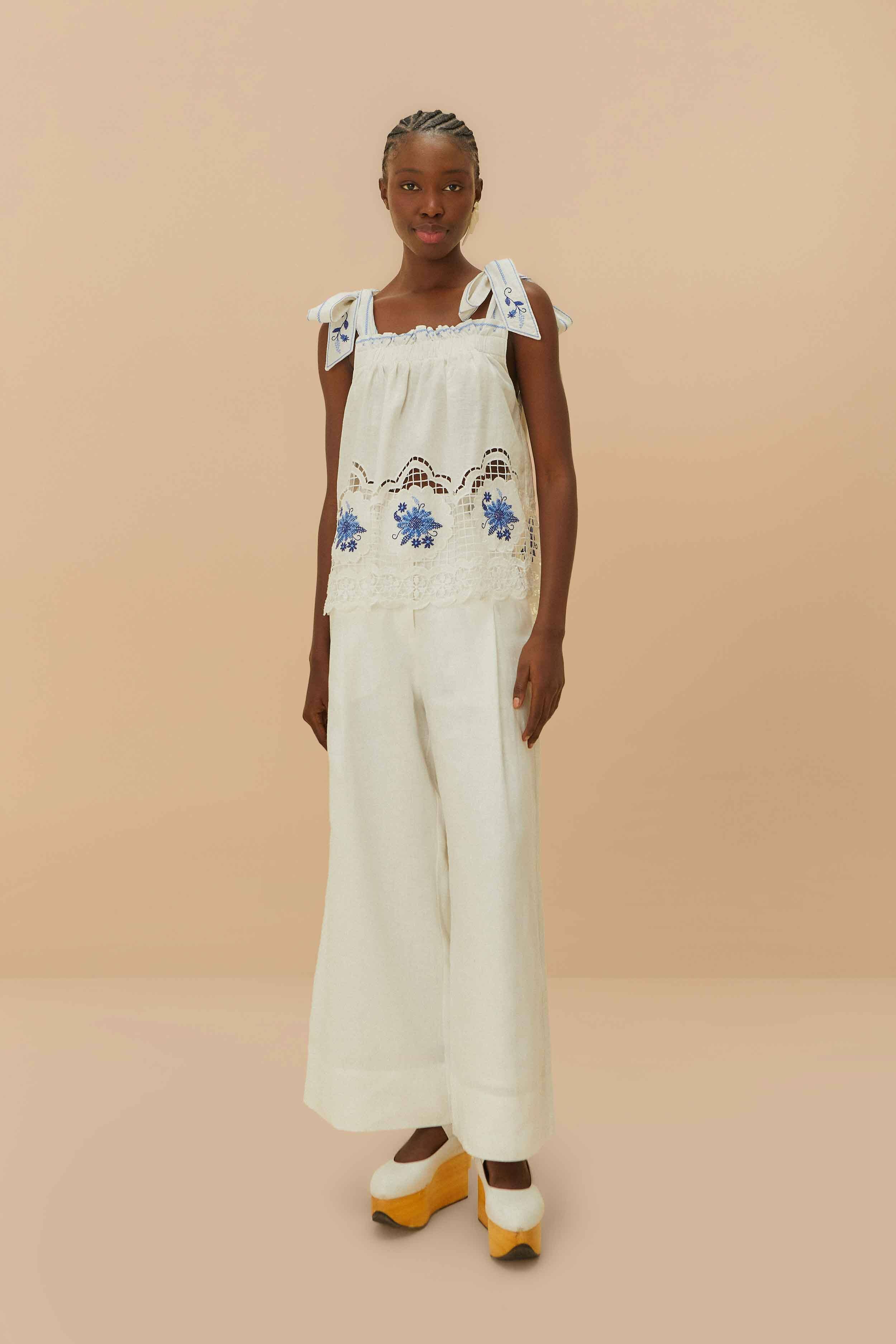 White Daisy Embroidery LENZING™ ECOVERO™ Euroflax™ Blouse