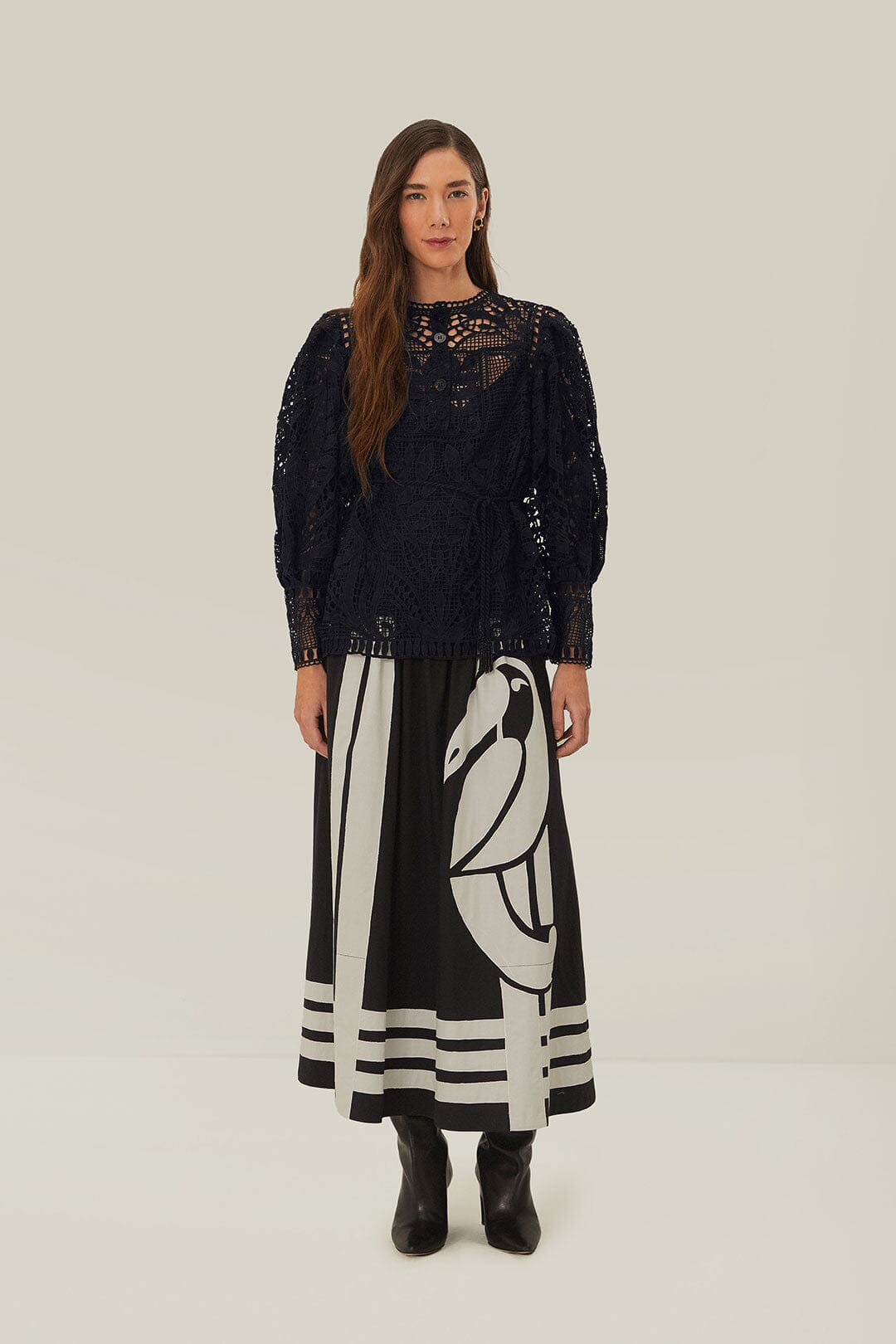 Sand Foliage Sketch LENZING™ ECOVERO™ Euroflax™ Midi Skirt