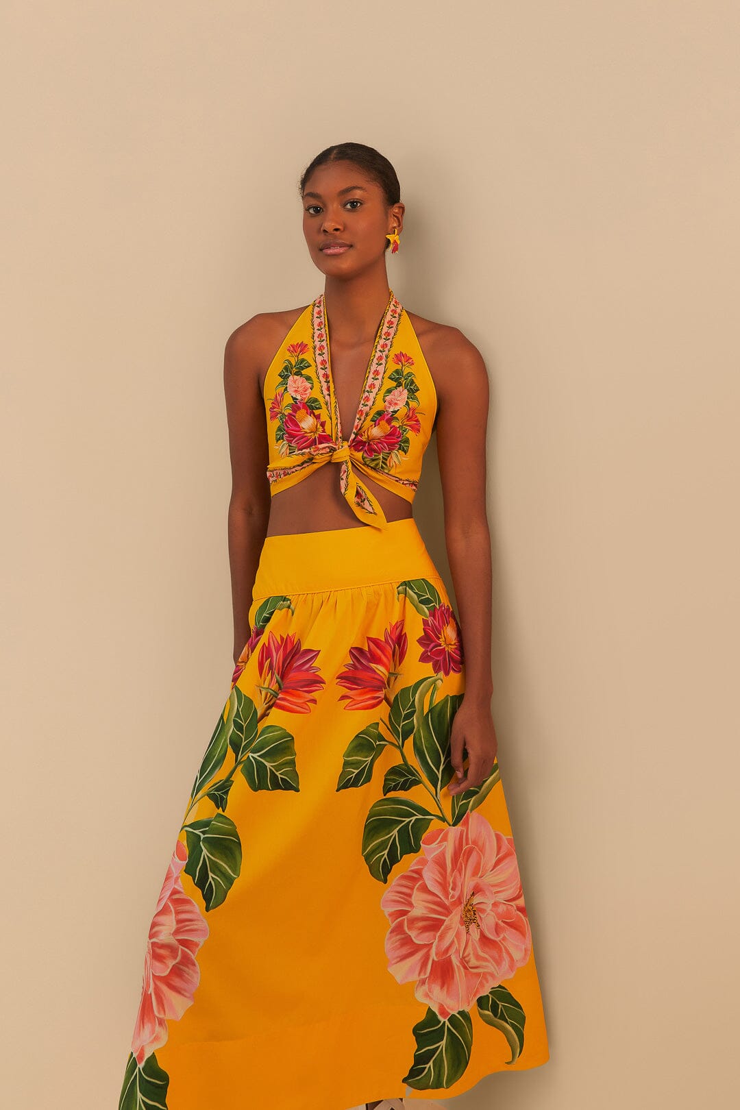 Yellow Spring Awakening Organic Cotton Midi Skirt