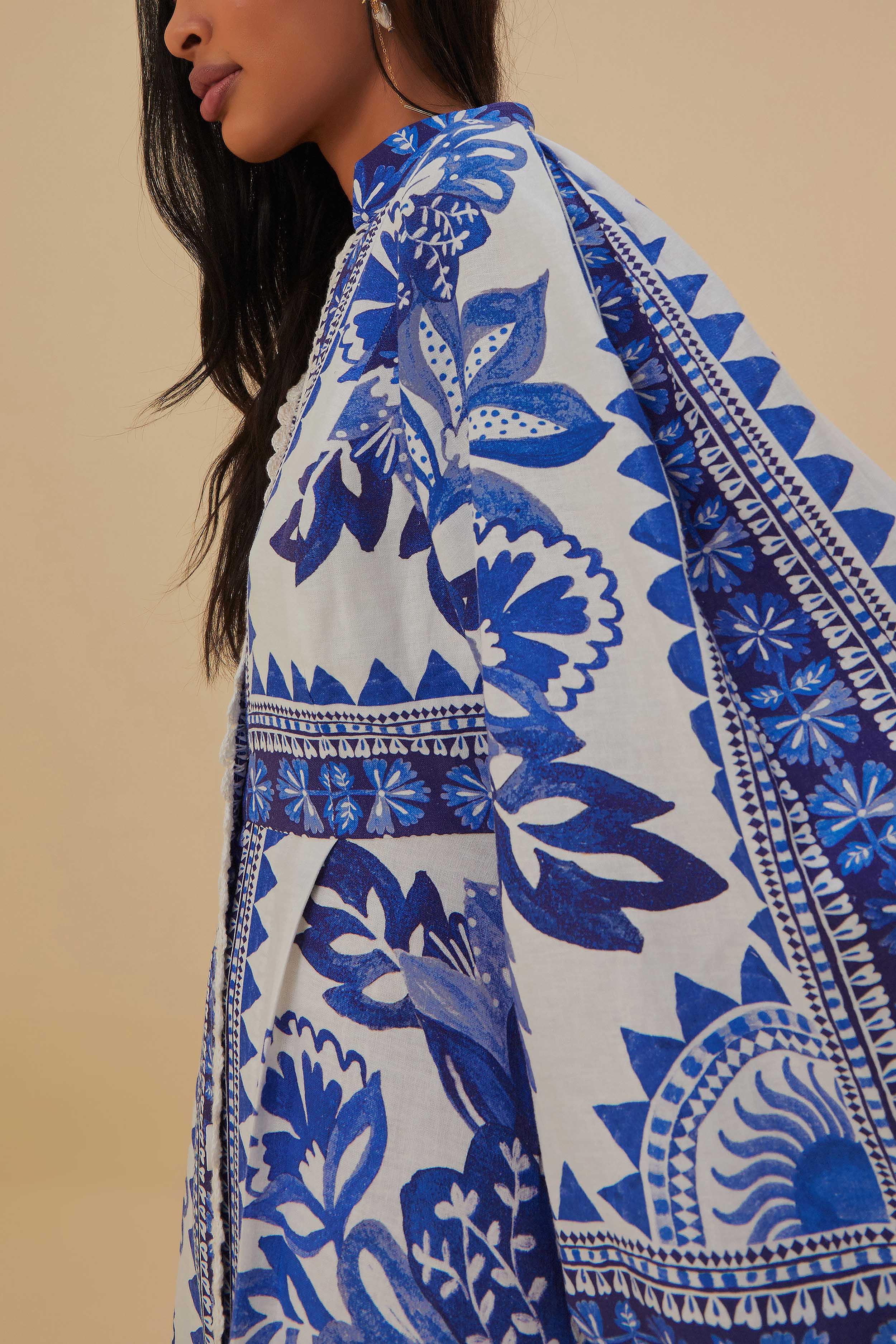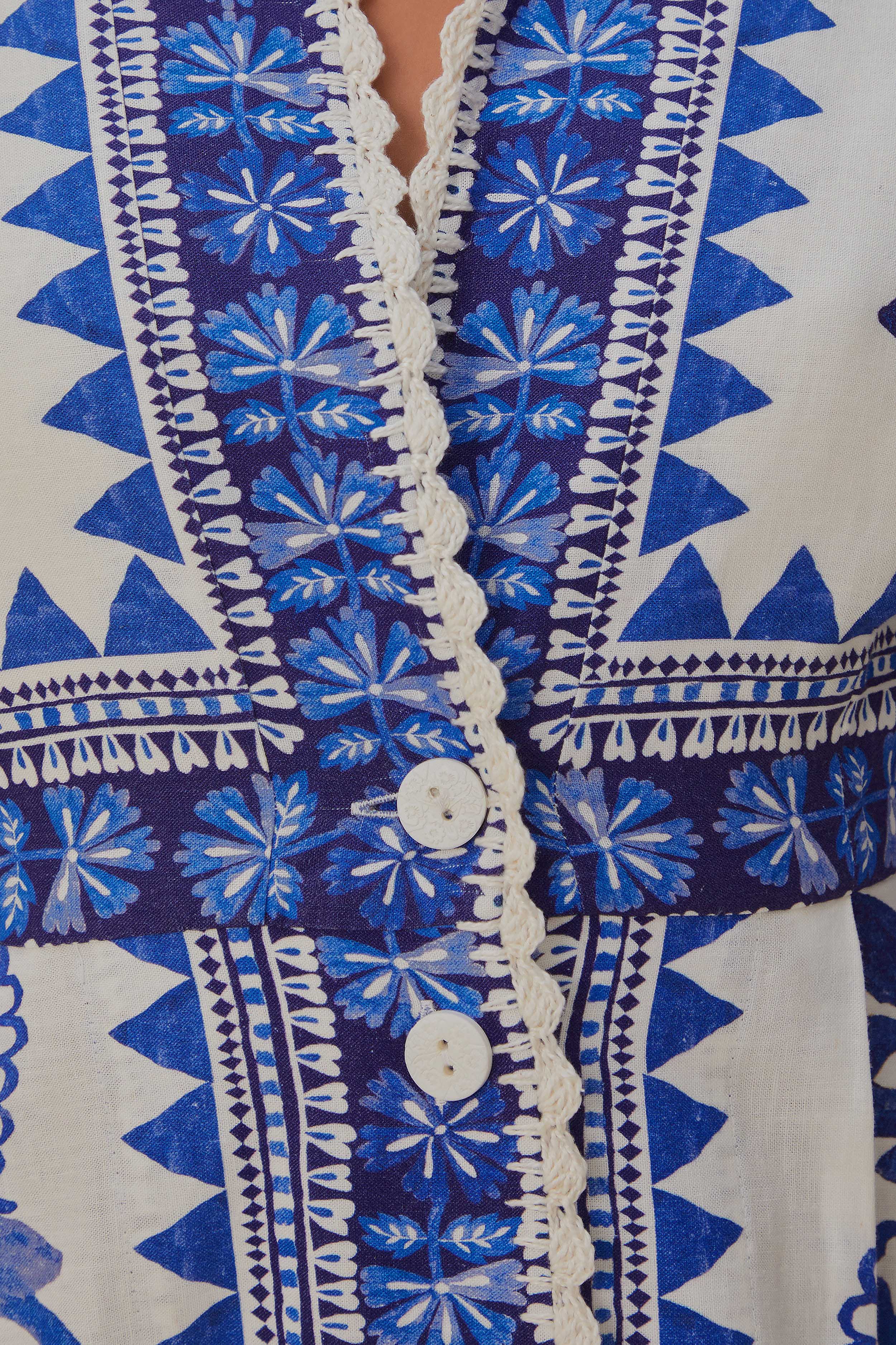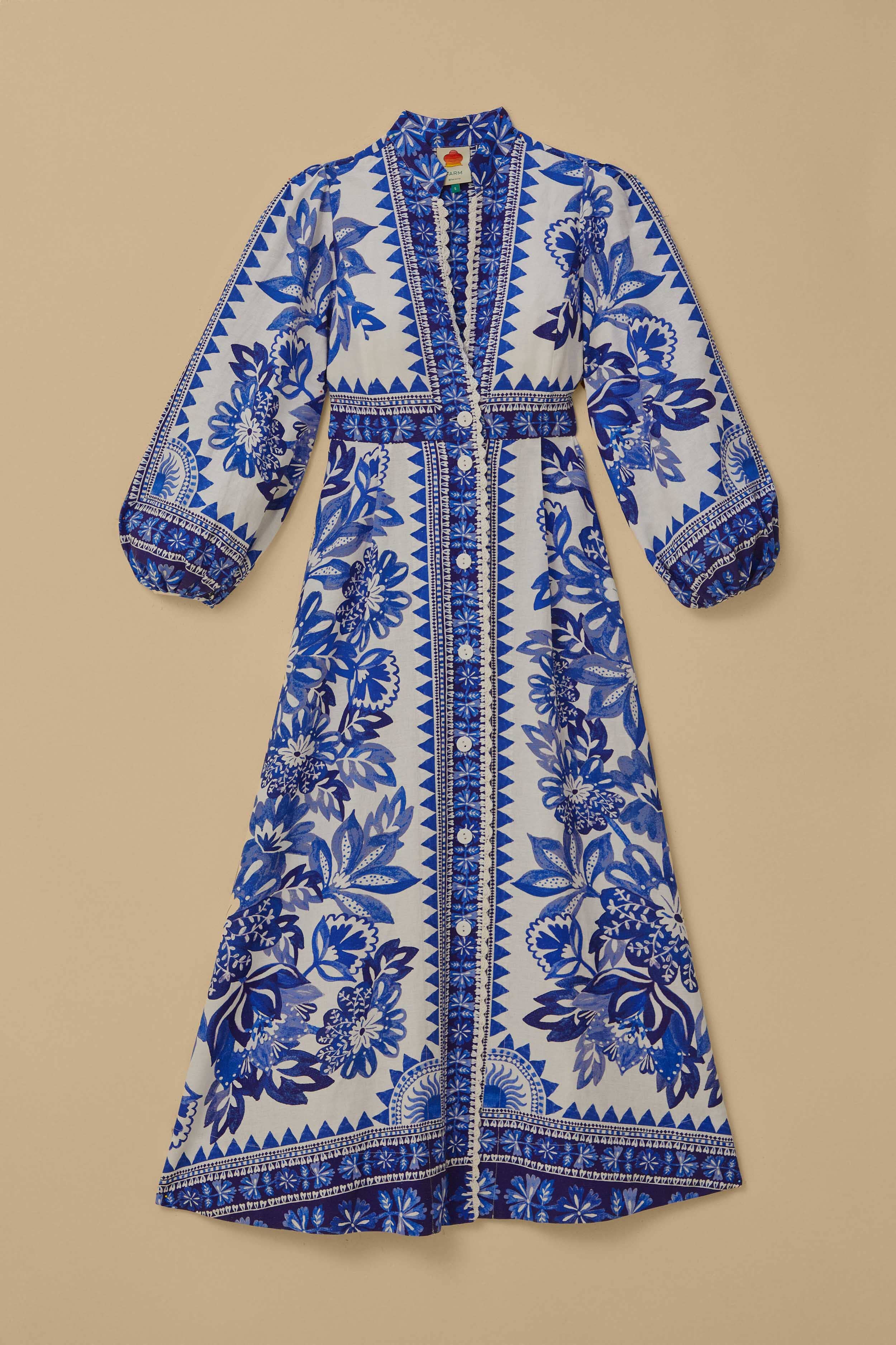 This Off-White Flora Tapestry Maxi Dress features a soft V-neckline and center front buttons for a playful yet responsible material. Made with Lenzing™ Ecovero™ and Euroflax™, this dress offers long sleeves and a feminine silhouette. Perfect for any occasion, while still being mindful of the environment.