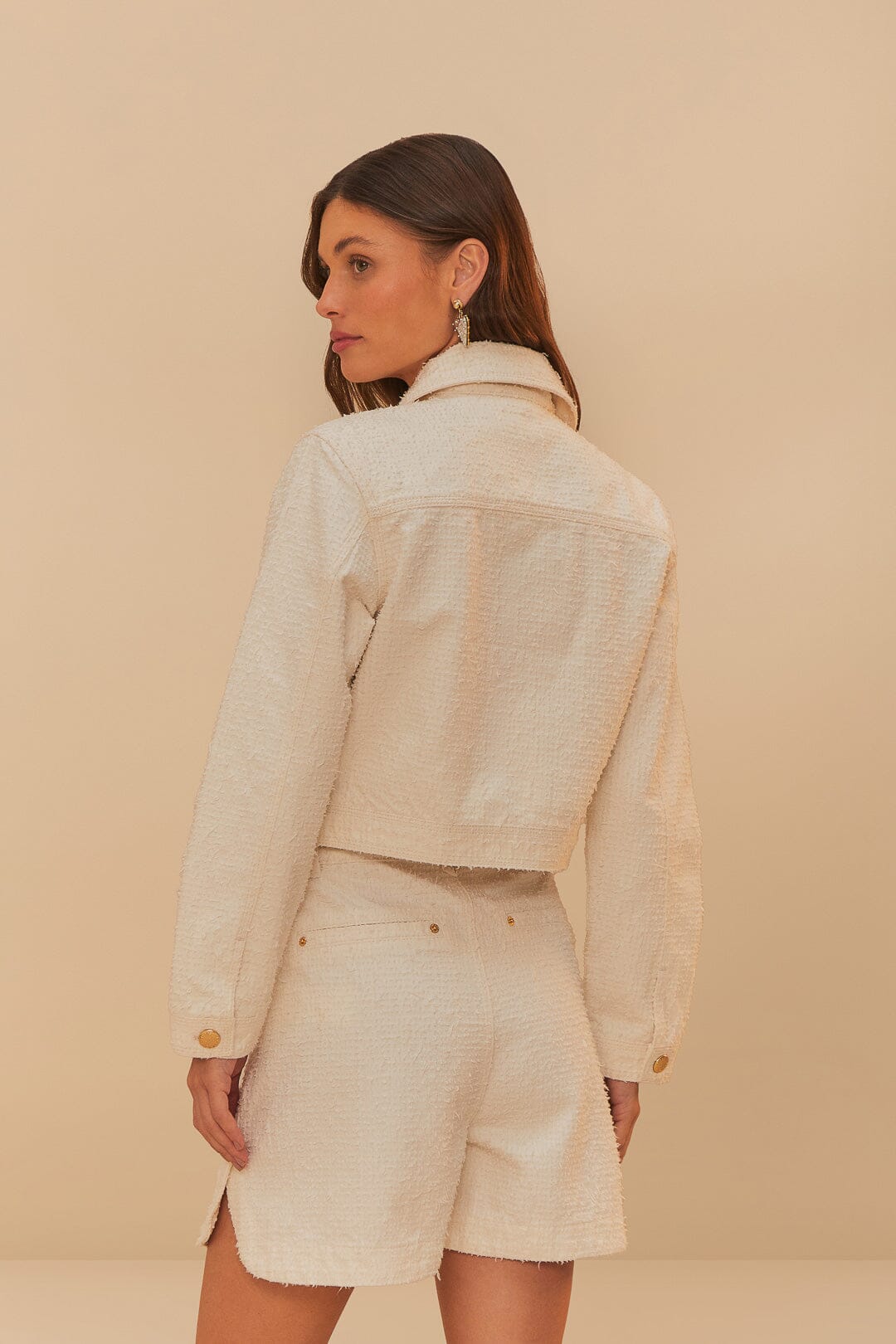 Embrace effortless elegance with the Off-White Twill Laser Pleated Shorts. Crafted from responsible materials, these shorts showcase intricate embroidery, adding a touch of artisanal charm to your wardrobe. The unique pleated design creates a graceful silhouette, while the soft off-white hue provides versatile styling options. Perfect for leisurely strolls or chic gatherings, these shorts invite warmth and playful sophistication into your everyday ensemble.